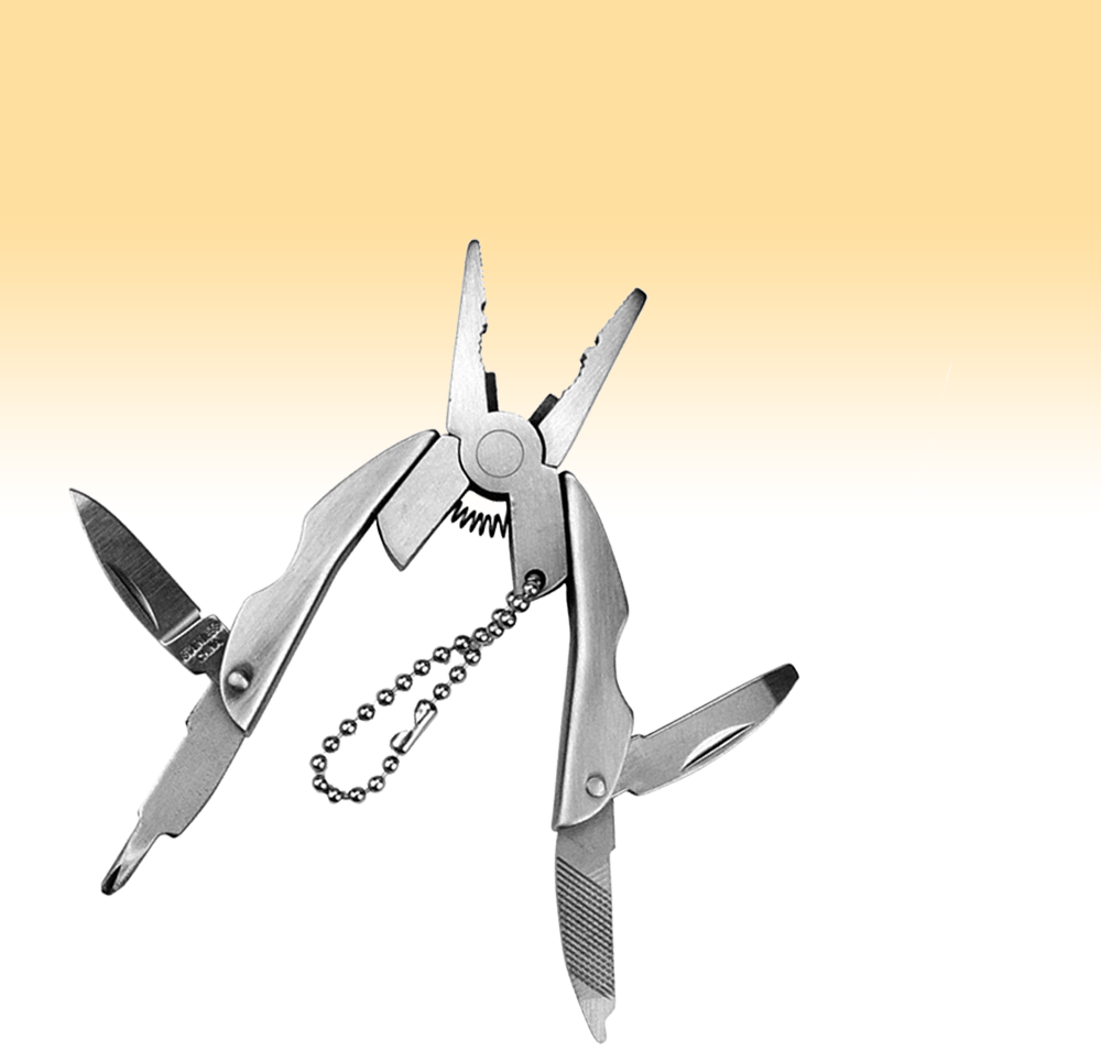 Multifunkční kleště jsou skvělým společníkem na cestách. Jsou velmi skladné, ve složeném stavu je jejich rozměr pouhých 5 cm. Připevnit si je můžete i na klíče a mít je tak vždy při sobě. Štěstí přeje připraveným. Obsah balení: 1x Multifunkční kleště1x Pouzdro Technická specifikace: Materiál: nerezová ocelRozměr balení: 7 x 5,5 x 1 cmRozměr produktu ve složeném stavu: 5 x 3 x 0,8 cmRozměr produktu v rozloženém stavu: 7,5 x 5,5 x 0,8 cm6 různých nástrojů Ilustrační video