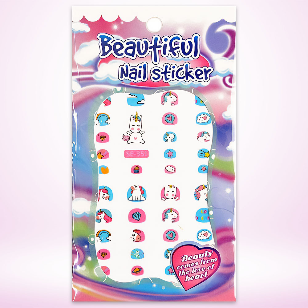 Objevte kouzlo nehtového zdobení s nálepkami na nehty s jednorožci pro malé parádnice! Tato barevná sada ukrývá 48 roztomilých samolepek s motivy, které rozzáří oči každé malé slečně. Najdete zde jednorožce s duhovou hřívou, veselé hvězdičky, srdíčka i zářivé duhy.