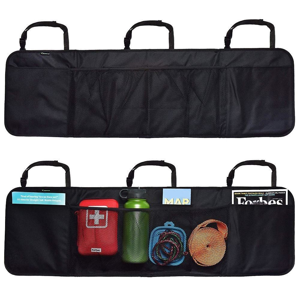 Ať už se jedná o pití, svačinu, časopisy, poznámkové bloky či psací potřeby, vše můžete umístit do zavazadlového prostoru. Organizér visí uchycený za zadní sedačky, a vy tak stále máte spoustu místa v kufru. Praktická věc, která se ve vašem autě určitě neztratí!