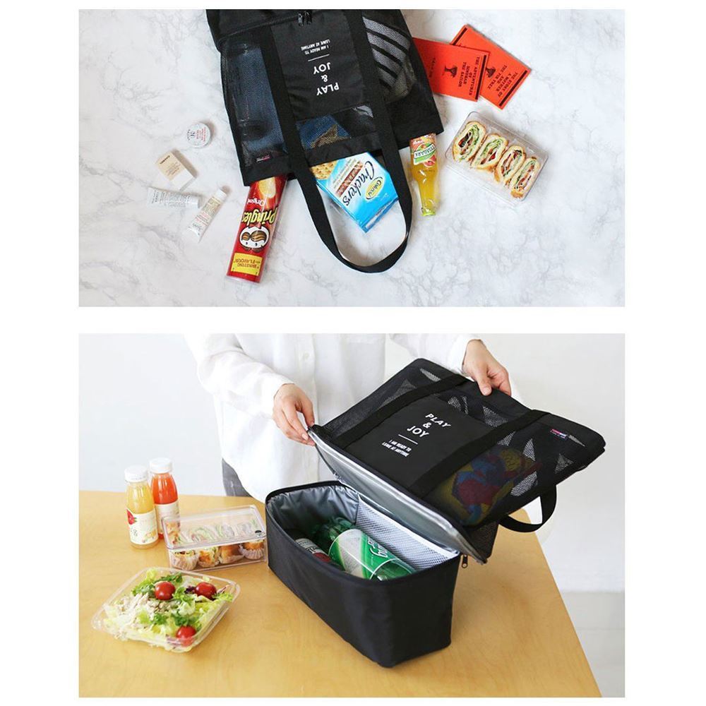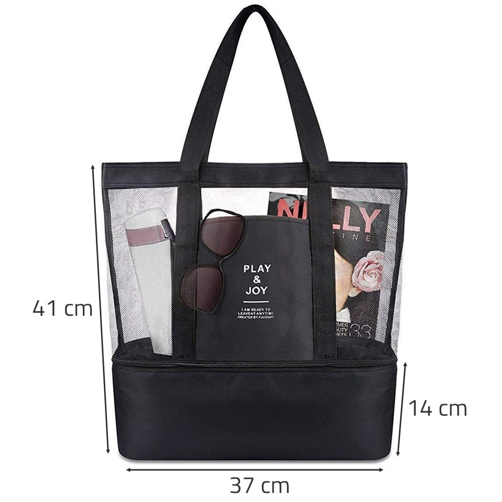 Praktická plážová taška s termo přihrádkou udrží nápoje a svačiny v chladu. Dostatek místa na vše potřebné k vodě i na výlety.