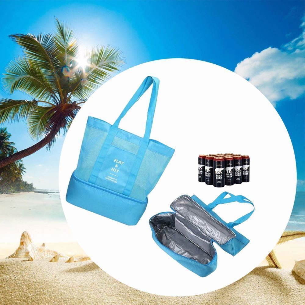Praktická plážová taška s termo přihrádkou udrží nápoje a svačiny v chladu. Dostatek místa na vše potřebné k vodě i na výlety.