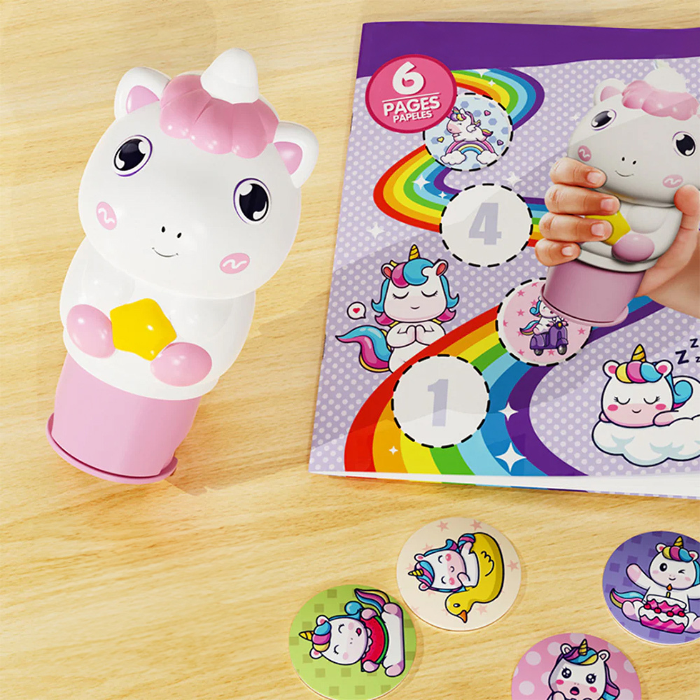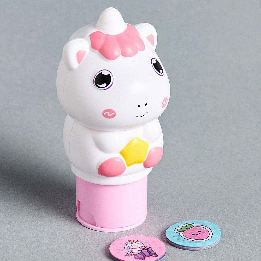 Samolepkové razítko je splněným snem malých tvořivců! Do roztomilého razítka vložíte samolepky (součást balení) a můžete si tak snadno ozdobit sešity, deníky, přáníčka nebo si jen tak hrát a vytvářet vlastní kreativní díla. Razítko se samolepkami lze využít i na odměny. V balení se ukrývá 100 ks samolepek, knížka o 6 stránkách na tisknutí samolepek a samotné razítko.