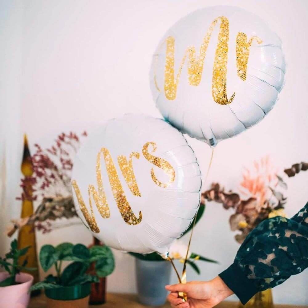 Sada svatebních balónků zajisti vkusnou výzdobu pro svatební oslavy. Fóliové balónky obsahují zlaté třpytivé nápisy v angličtině. V balení obdržíte 3 balónky s nápisy Mr., Mrs. a Love. Kombinace těchto tří balónků perfektně sedí na každou svatební párty. Vytváří i pěknou kulisu či doplněk na svatební fotky. Bílo-zlatá kombinace nikdy nevyjde z módy a skvěle se hodí pro svatební účely.