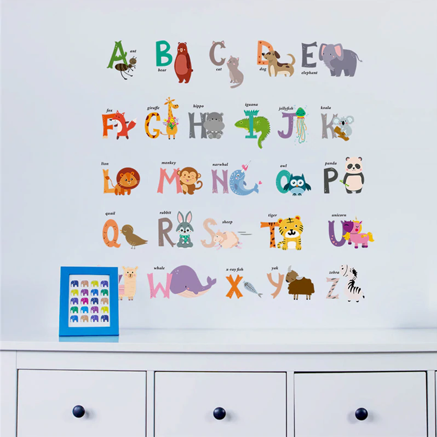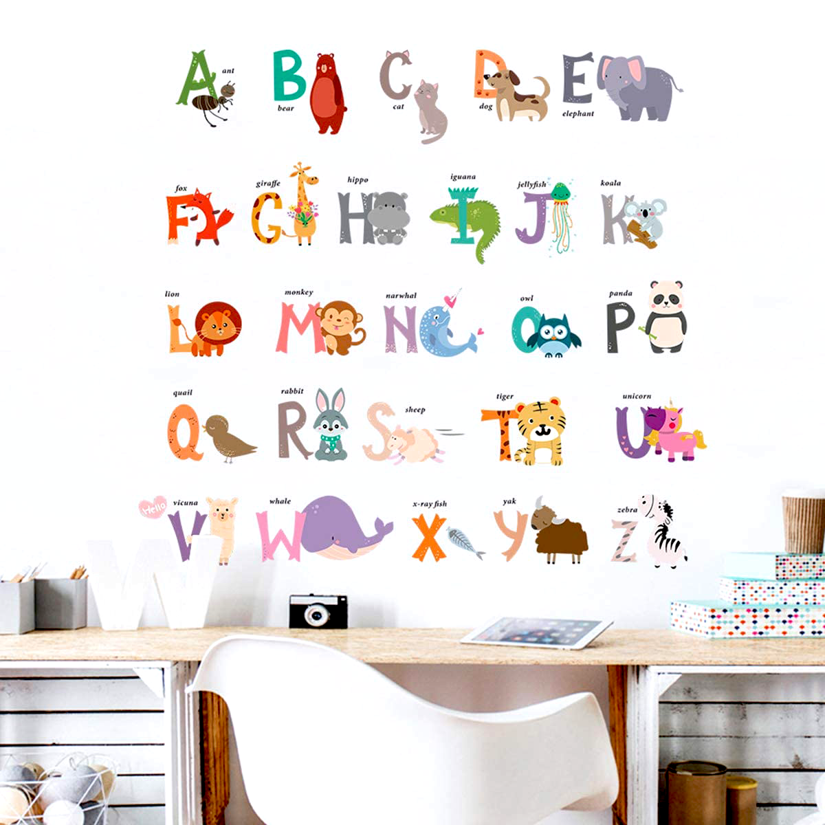 Vyzdobte pokoj malým raubířům! Tyto barevné samolepky na zeď rozveselí každou místnost. Nálepky se zvířátky děti naučí abecedu a zároveň se díky anglickým názvům zvířátek přiučí ještě něco navíc.