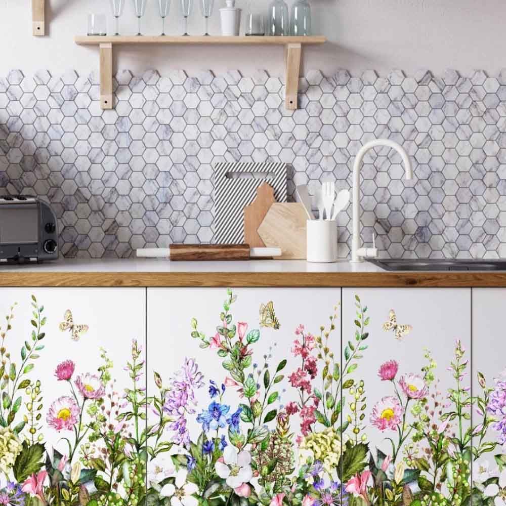 Rádi byste oživili prázdné zdi, ale nechcete zatloukat hřebíčky na rámečky nebo malovat? Pořiďte si tyto krásné samolepky s motivem rozkvetlé louky. Aplikace vám zabere jen chvíli. Květiny prozáří jakýkoli interiér, zlepší náladu, a zůstanou krásně živé za každého počasí.