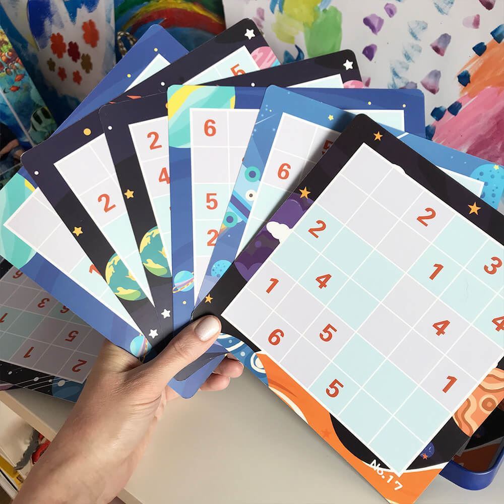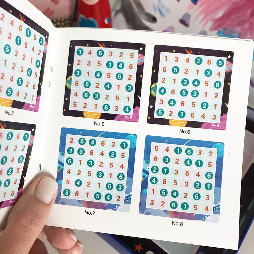 Hrací listy jsou uloženy v plechové krabičce. Díky tomu jsou pohromadě a nehrozí, že by se poztrácely. A jak se hra hraje? Nejdříve vyloupejte jednotlivé dílky z archu, poté si vyberte předlohu. Postupně pak doplňujte čísla nebo symboly. Důležité je, aby se stejné symboly neobjevovaly 2× v řádku, sloupci nebo barevně ohraničeném poli. V balení je manuál se správnými řešeními. Tudíž si lze správnost sudoku ověřit. Dále jsou v balení různé předlohy a magnetické díly, které se skládají podle předlohy.