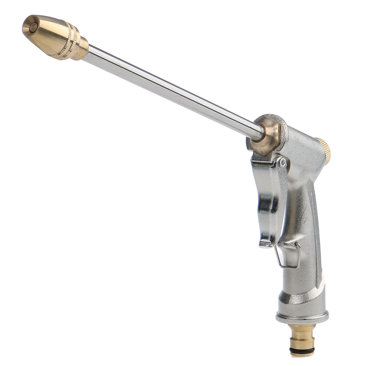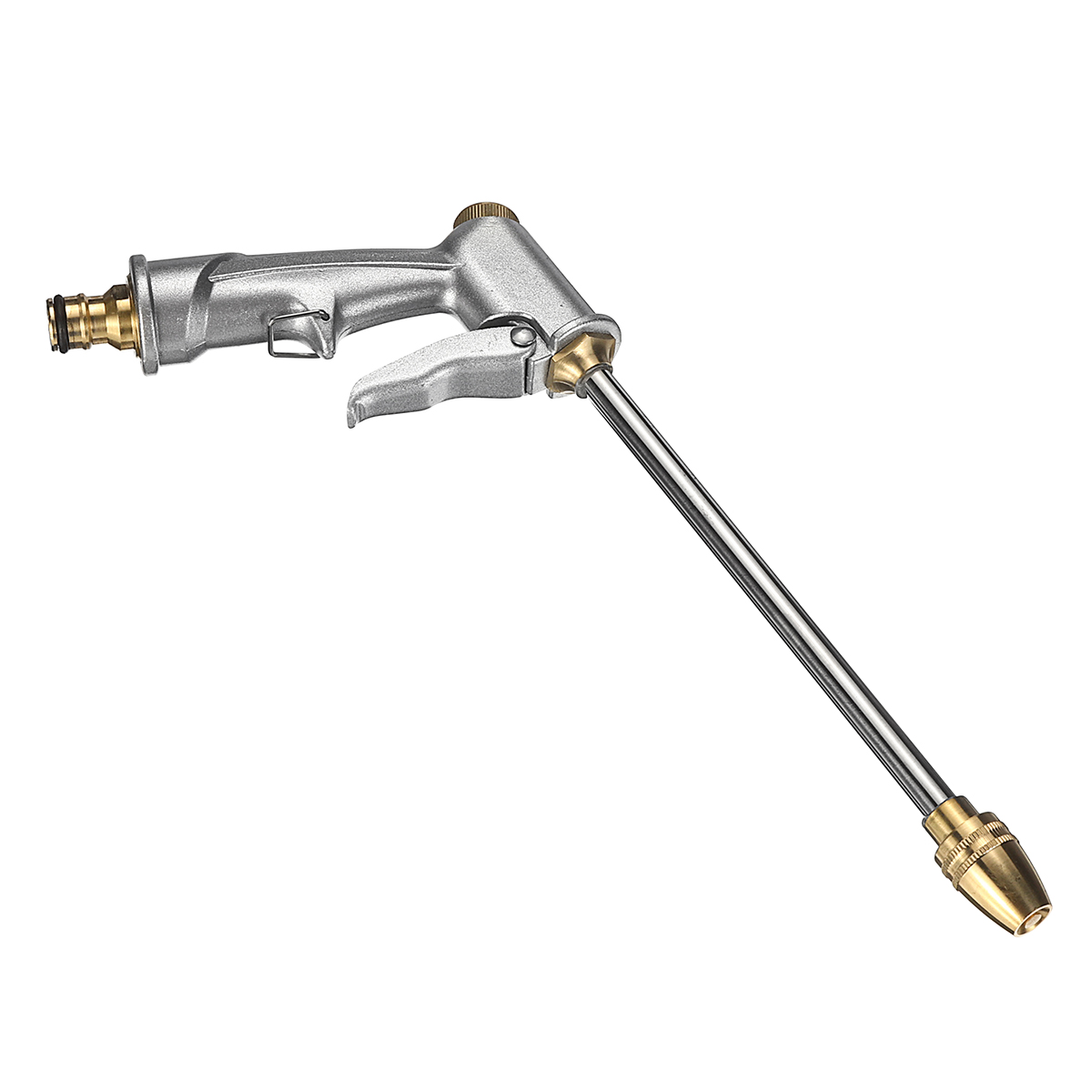 Pokud toužíte po perfektně umytém autě či chcete mít pečlivě zalité květiny na zahradě, je tato pistole přesně pro vás. Jednoduše jí připojíte pomocí rychlospojky k hadici.