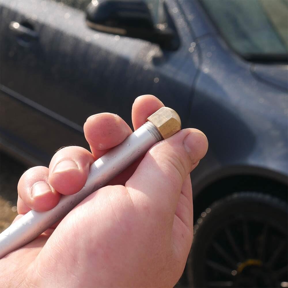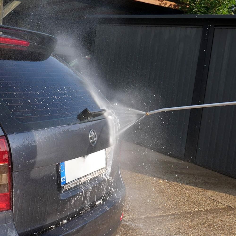 Tlakový nástavec na hadici je skvělý pomocník, který Vám usnadní spoustu práce. Díky němu se z Vaší obyčejné zahradní hadice stane vysokovýkonná trysková vapka! lehce zahnutý.