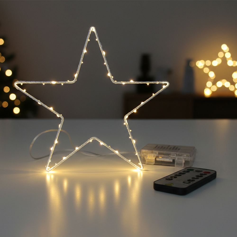 Vytvořte kouzelnou vánoční náladu ve svém domově s tímto stylovým LED osvětlením ve tvaru hvězdy. Teplé světlo, které tato dekorace vyzařuje, přináší klidnou a sváteční atmosféru, ať ji umístíte na okno, zeď nebo půjde na komodu. Kombinace elegantního kovového rámu a jemných LED světel zajišťuje efektní vzhled i zvenčí, aniž by to působilo rušivě. Můžete ji ovládat pomocí dálkového ovladače, který nabízí 8 režimů svícení.