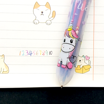 Oblíbený motiv jednorožce letí. Navíc když ho můžou vaše děti mít na propisce, kterou vezmou do školy, udělají parádu o to více. Vícebarevná propiska s jednorožcem nabízí 10 veselých barviček. Mezi jednotlivými barvami libovolně přepínáte. Pro změnu barvy stačí zmáčknout hlavu jednorožce a zvolit si další vybranou barvu.