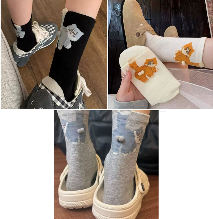 Vtipné ponožky s kočičím zadkem 3D - černé